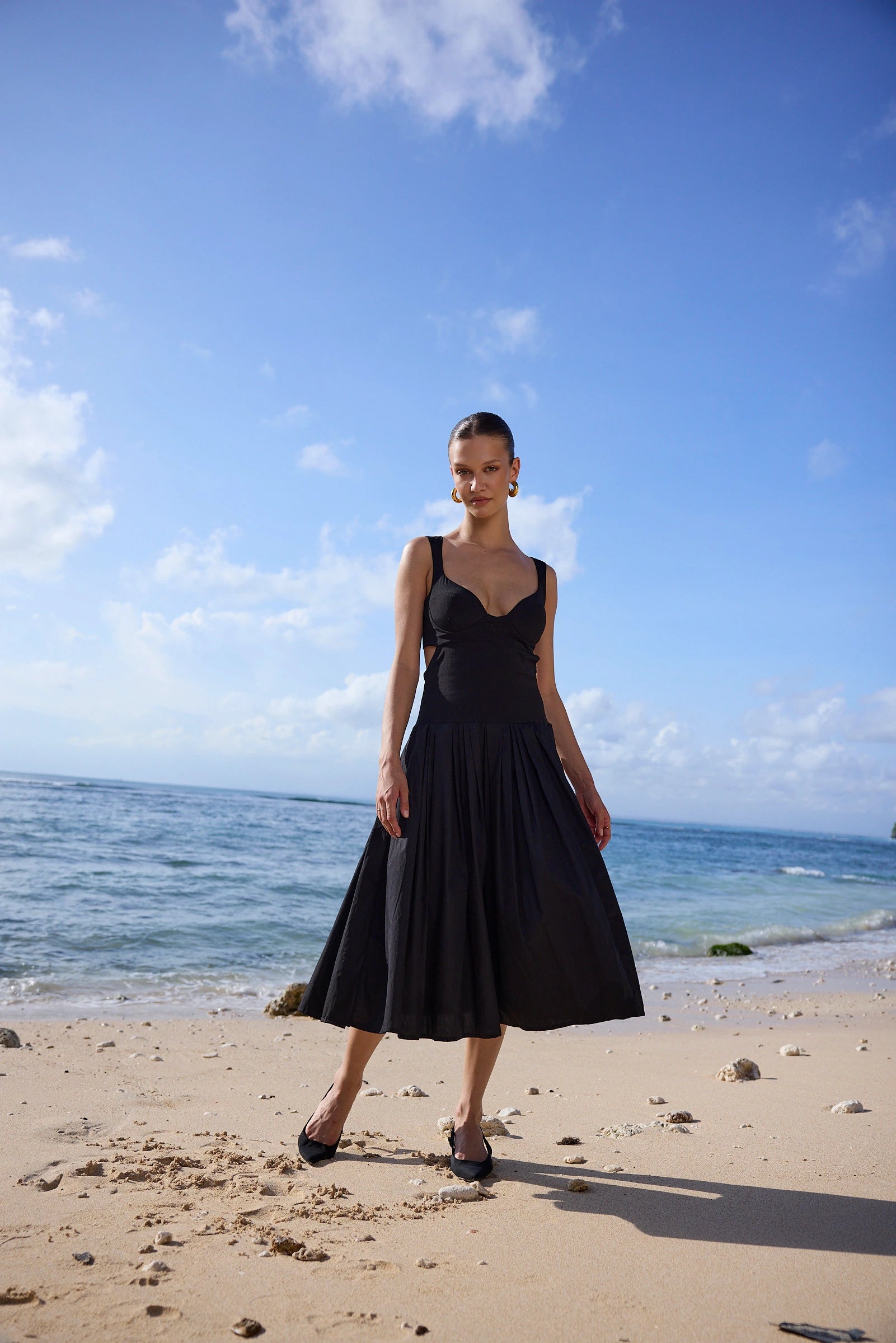 Idaho dress features custom lace with our signature bodice top fit, a cotton-blend lining with a touch of stretch for comfort. The mid-calf skirt adds a modern, effortless silhouette—perfect for versatile styling.